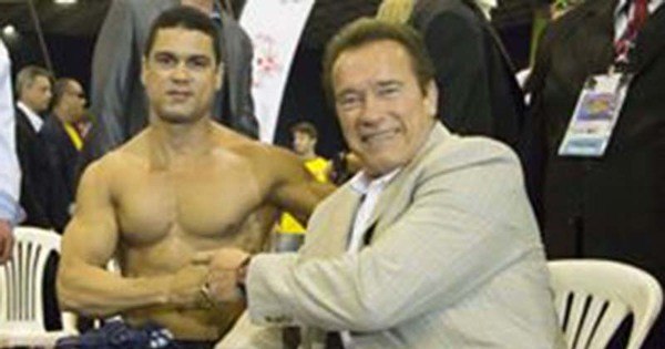 PM paraplégico representa a Bahia, em evento fitness e se emociona ao conhecer Arnold Schwarzenegger. Ele também encontrou o atleta Victor Belfort